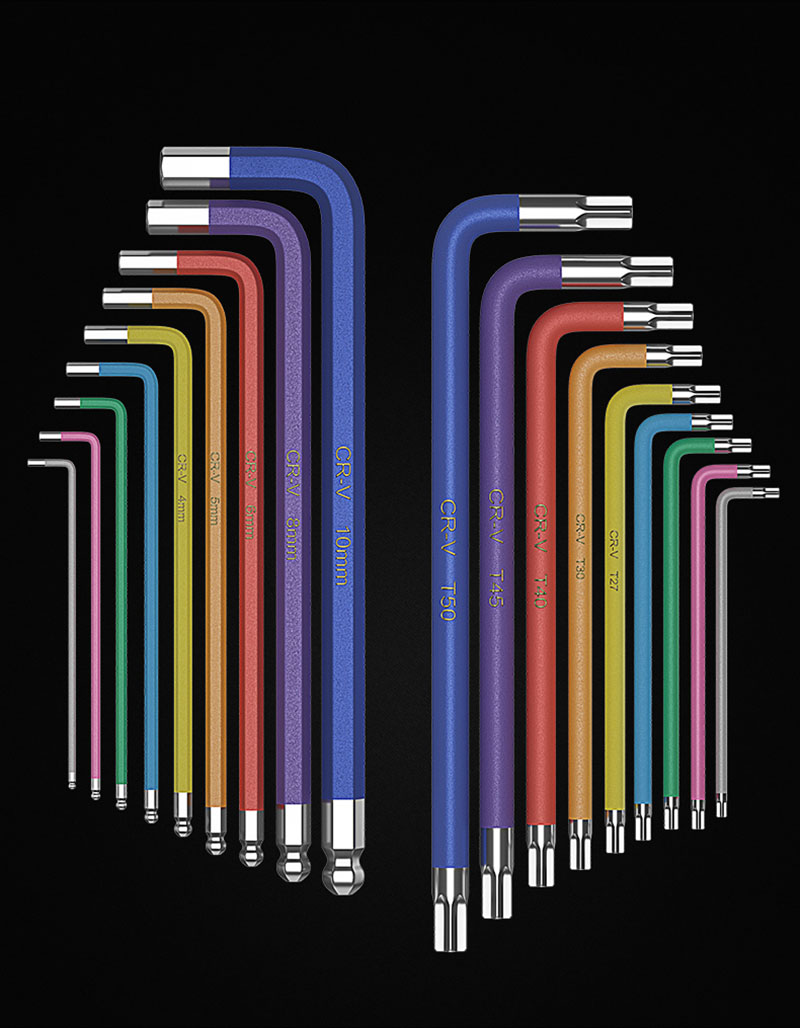 This 18-pieces Allen key set completely covers all hexagon socket screws and contain both inch and metric measurement
