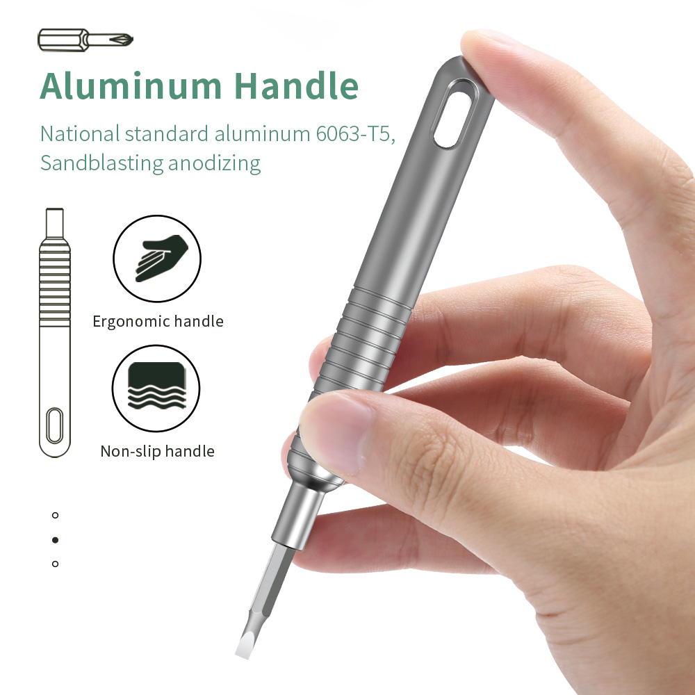 🍥【Multiple Magnetic Bits】: This mini screwdriver set include a handle and 30pcs screwdriver bits.--------➤Phillips (PH000/00/0/1/2), ➤Torx (T2/3/4), ➤Torx Security (T5H/6H/8H/10H/15H), ➤Flathead (SL1.5/2/3/4), ➤U-shaped (U2.6), ➤Hexagon (H1.5/2.0/3.0/4.0), ➤Tri-point (Y0.6/1), ➤Pentalobe (P2/5/6), 2.5, 2.3, 0.8.