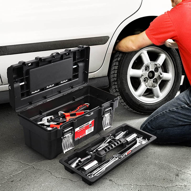 【Tool Box Size】16-inch tool box is ideal for household use, lightweight for carrying. Outside dimensions: 15.7" x 6.7" x 6.9". Internal dimensions: 14.2"X5.5"X5.1". It is of perfect size to contain your hammer, screwdrivers, wrenches, and pliers among many others.