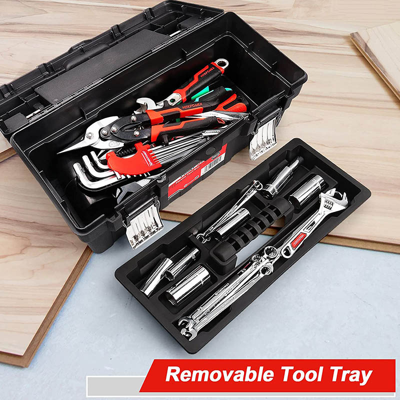 【Storage Space】Removable inner trays provide storage while keeping the tool kit organized. Top Transparent storage box can store small screw, nut, etc. Provides ample storage space.
