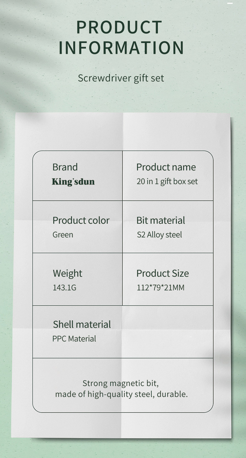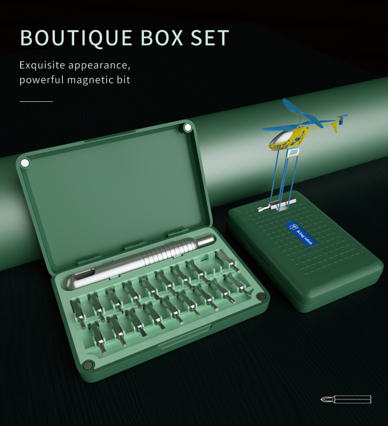The equisite design of the receiving box meets most daily needs. The 20 high precision batches of the screwdriver are refined.