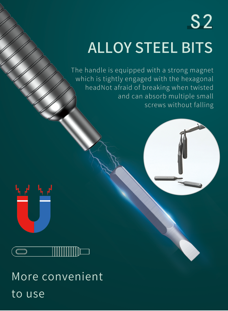 Built-in Strong Magnetic Easy to Plug, Bits head with magnetic can easily absorb screws.