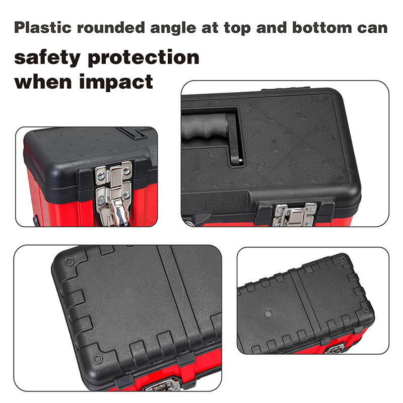 [Toolbox Capacity Design]A removable inner tray with handle divided 4 toolbox compartment can hold our most used tools- screwdrivers,pliers,wrenches,etc.The bottom compartment can store some larger tools.Keep you all tool organized.Red and black home-owner tool boxes will be conspicuous in any case