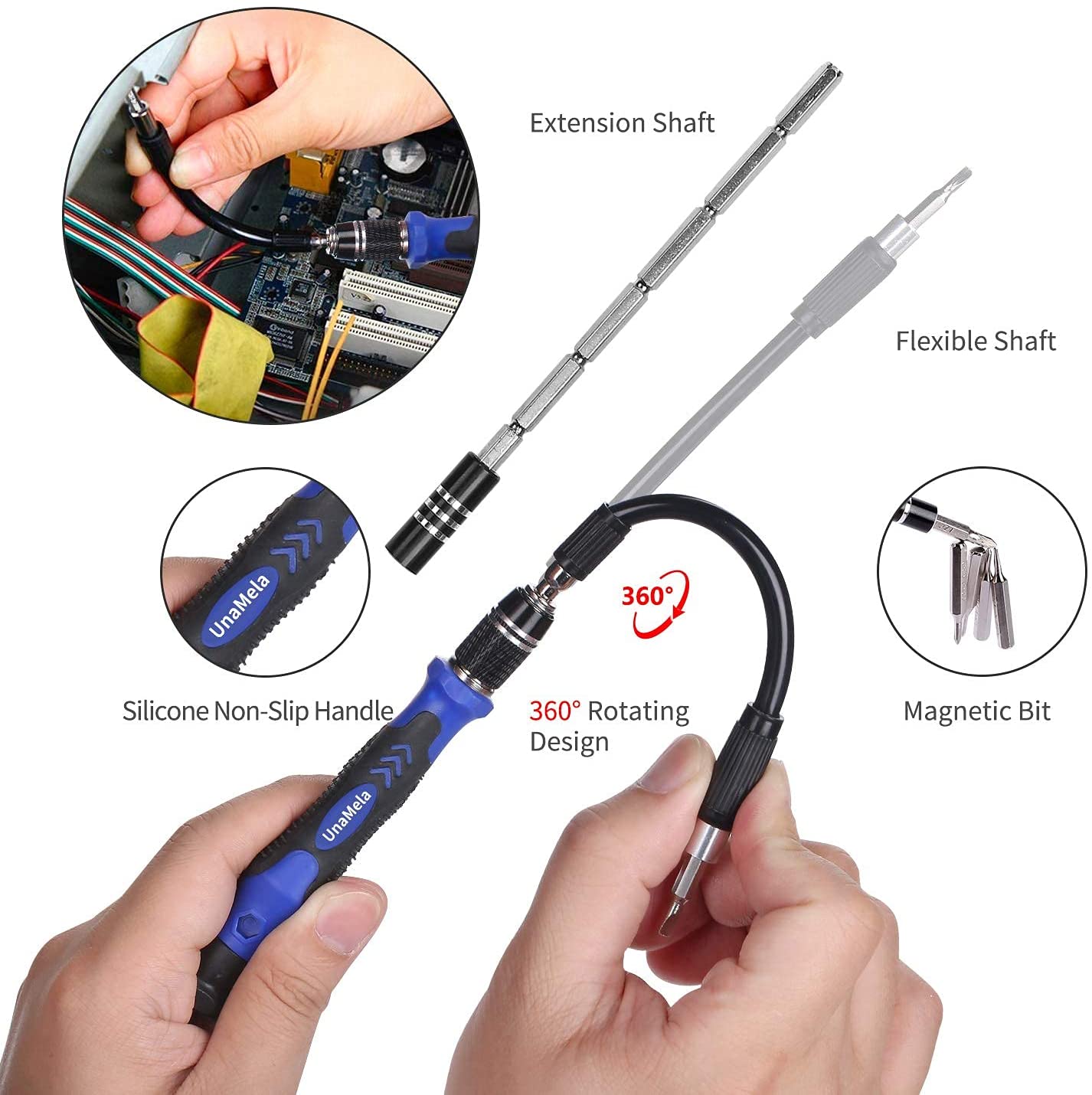 If you're looking for a small toolkit and you plan on doing a lot of electronics maintenance, UnaMela screwdriver set is a seriously consider. Driver kit include all current common and specialty bits, More accessories,egs for Magnetizing and demagnetizing tool , anti-slip antistatic tools, makes repairing work more easily and safer.