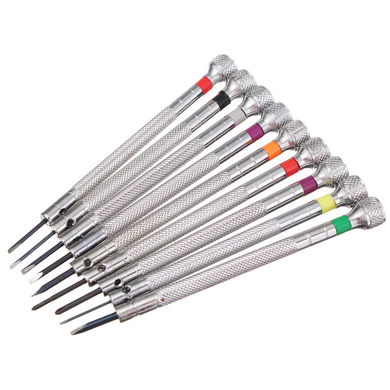 Economy 9-piece screwdriver set for watch repair and eye glass repair of all kinds;