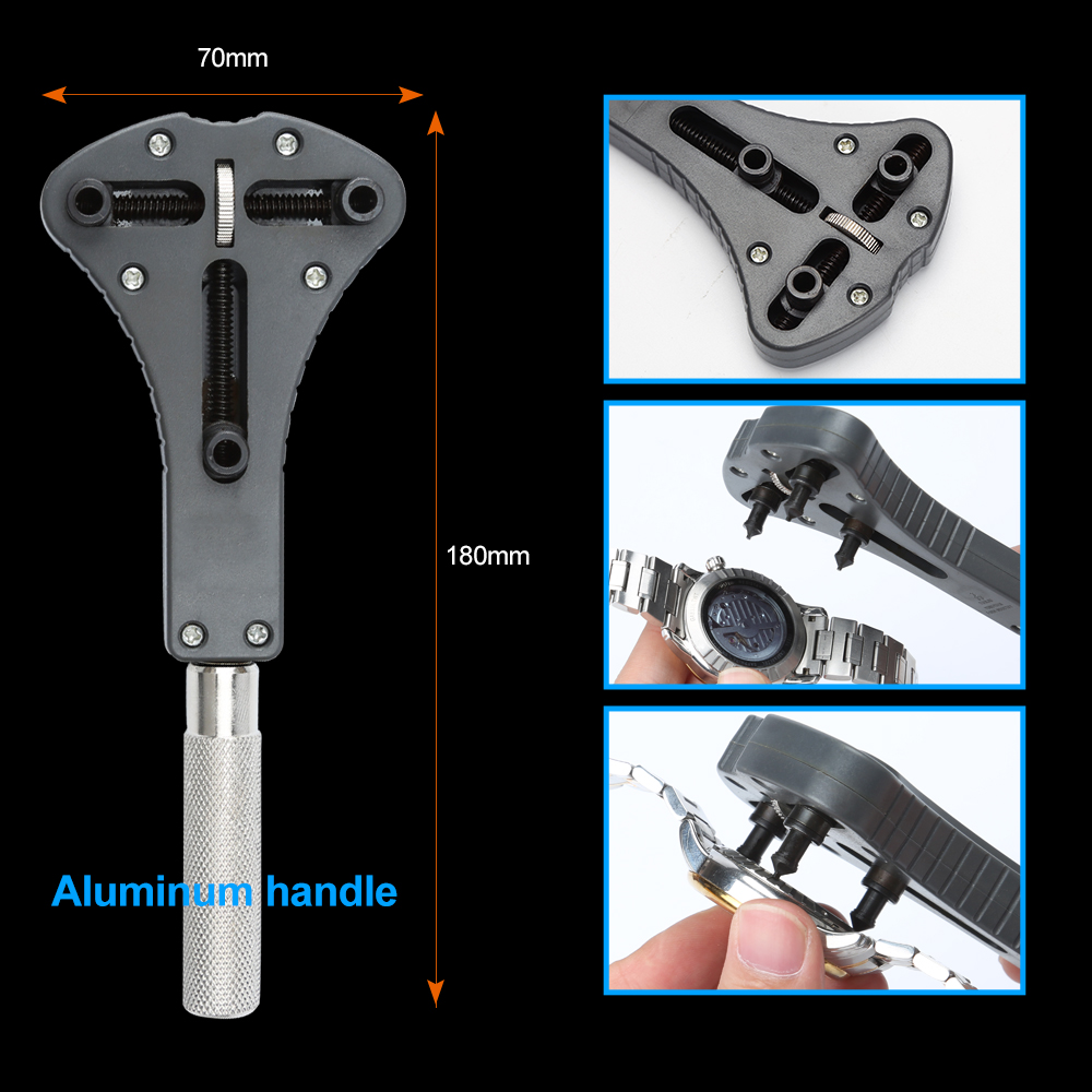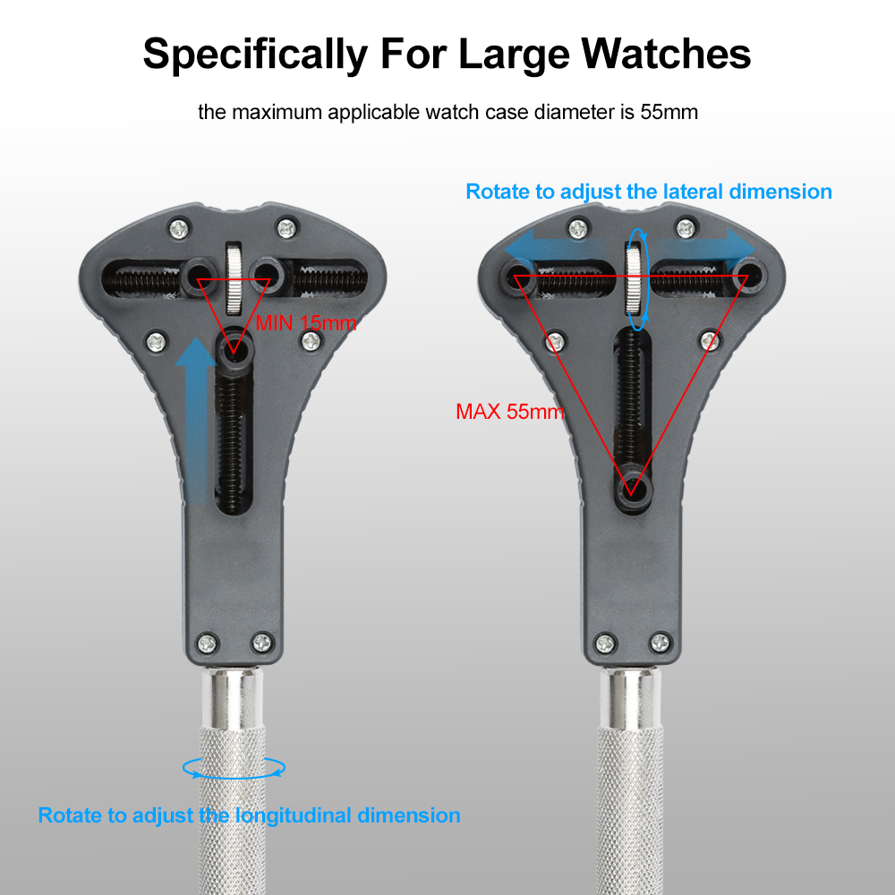 MUILTI-FUNCTIONAL: Perfect for tasks: opening watch backs, changing watch batteries etc. The extensible range of this three-pin case opener is 15mm- 55mm. Suitable use for both big watch and small watch.
