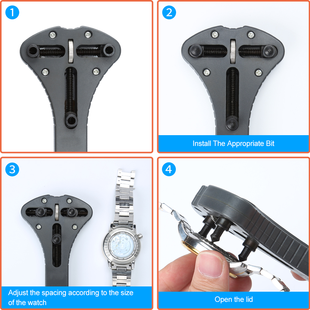 STURDY & DURABLE: High Quality Watch Back Case Opener for different size watch. They are waterproof and will not easily get rust or damaged. Saving money and saving time.
